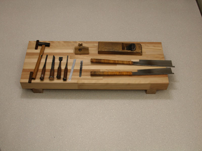 ![]() | Tool used for fold type trimmer table making. It forgot to take the photograph though it considerably used also excluding this. Hammer, chisel, sickle [kehiki], plane, gray-headed [ki], [tatehi] coming [nokogiri], and sidewise pull saw. |