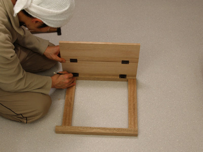 ![]() | The position in which it exactly encounters it while temporarily uniting it many times is found and the hinge is applied. |