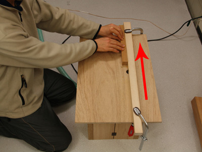 ![]() | Because the amount of cutting changes by the position of this sending stick, the trial cutting is done several times, the exact location is decided, and it does. It is easy to fine-tune it when lightly beating with the hammer after clamping is loosened when the position is moved. |