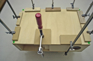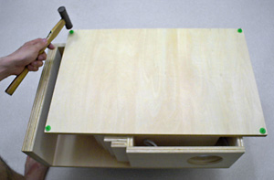 | Temporary stop [kugi] is stricken from the table to four corners of the board. It is stricken to length that it penetrates by about 2-3milli [kugi] ahead. |