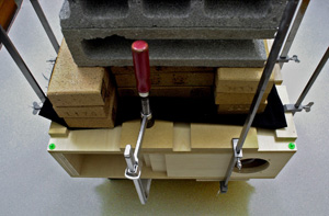 ![]() | When bonding ends, the temporary stop nail is pulled out with pincers. |