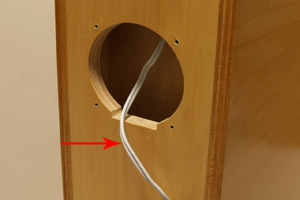 Wiring that connects the unit between terminals in the speaker box is pierced with internal wiring.