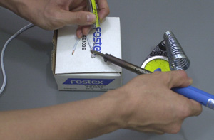 ![]() | It puts on pressure with pincers when the cable passes to the [fasuton] terminal and solder is poured. |