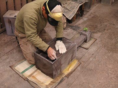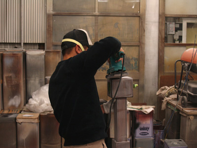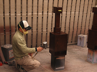 ![]() | The paper of # 400 is lightly appropriated by the hand and the last intermediate coat work starts. |