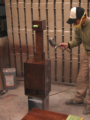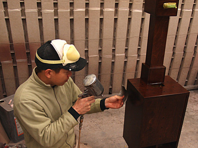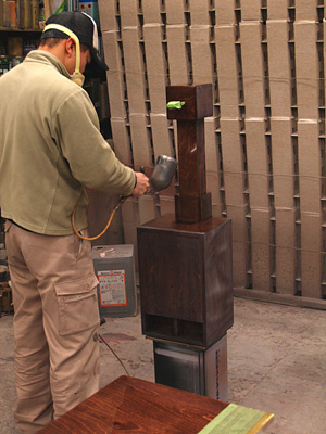 ![]() | Blow with the complementary (coloring) mixing colorant with the clear paint. As a result, a final shade is adjusted. If the amateur does terrible and difficultly, this becomes an irregular color at once. In addition, it is all gloss painting this time, and the bit of a mess-up is [de] at once, too. It can be said it is difficult in the superlative degree in the woodwork painting. � |
