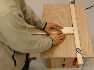 | When the edge material can be used, be adjusted so that R may become half of board thickness ,in a word, 7.5mm to the trimmer stand, and the trimmer be set well, the trimmer is put on the table and both sides of the back. | |