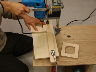| The hole opened well. It is in work to apply the taper because the position of the nut with packing was decided by this. To prevent the pipe resonance sound, applying the taper :. The taper is applied to the baffle in detail. | |
