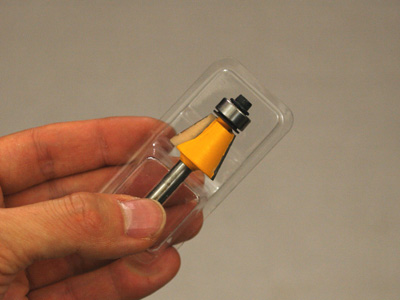 | Here handles the trimmer and the trimmer table this time. The bit used is a bit of this shape. It is called the chamfering bit with [kasa]. | |