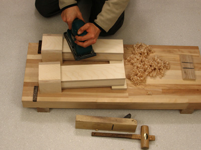| Bonding of problem part and 26. Every time, here nails it because it is scary only in the bond on strength. It changes to the wood screw to increase strength or more this time. It is possible to work with stability as shown in the photograph when L and R are alternated. The wood screw is put when drying to some degree. Because the head of the wood screw knocks against here when uniting with the body, it should be [ireru] in the drill as for spot-facing. | |