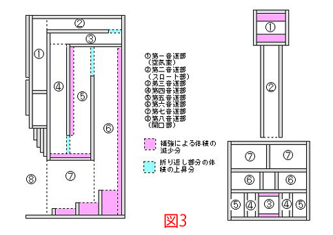 | ..decrease in the volume by reinforcement.. | When the reinforcement crosspiece was installed in each sound road part, this is calculated as a decrease in the volume. I think that space etc. that put gravel in the opening of the CW horn are a decreases in the volume by reinforcement, too (Refer to Figure 3). |